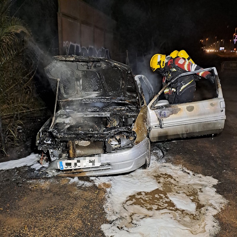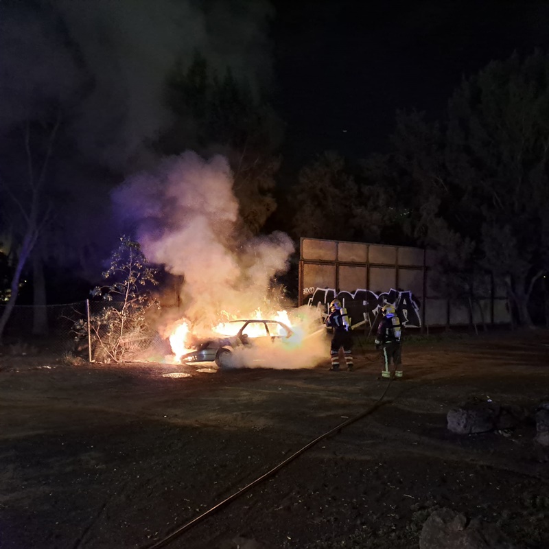 A la llegada de los bomberos, que fueron avisados por el CECOES a las 19.39 horas de la tarde, el vehículo, que se encontraba estacionado en el llano detrás del intercambiador de guaguas, ardía en su totalidad con el peligro de que el fuego se propagase a los árboles que hay en la zona del antiguo cementerio donde hoy anidan una colonia de garzas e infinidad de palomas.