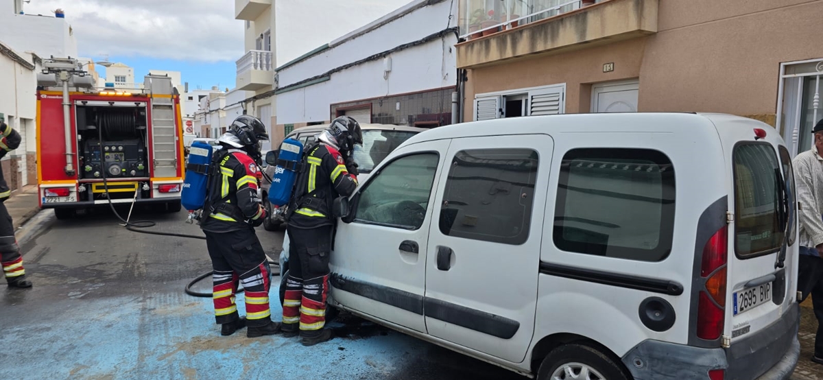 En las horas del mediodía de este sábado los bomberos también acudieron a la llamada de un particular por el incendio de otro vehículo en la calle Coronel Capaz de Arrecife.