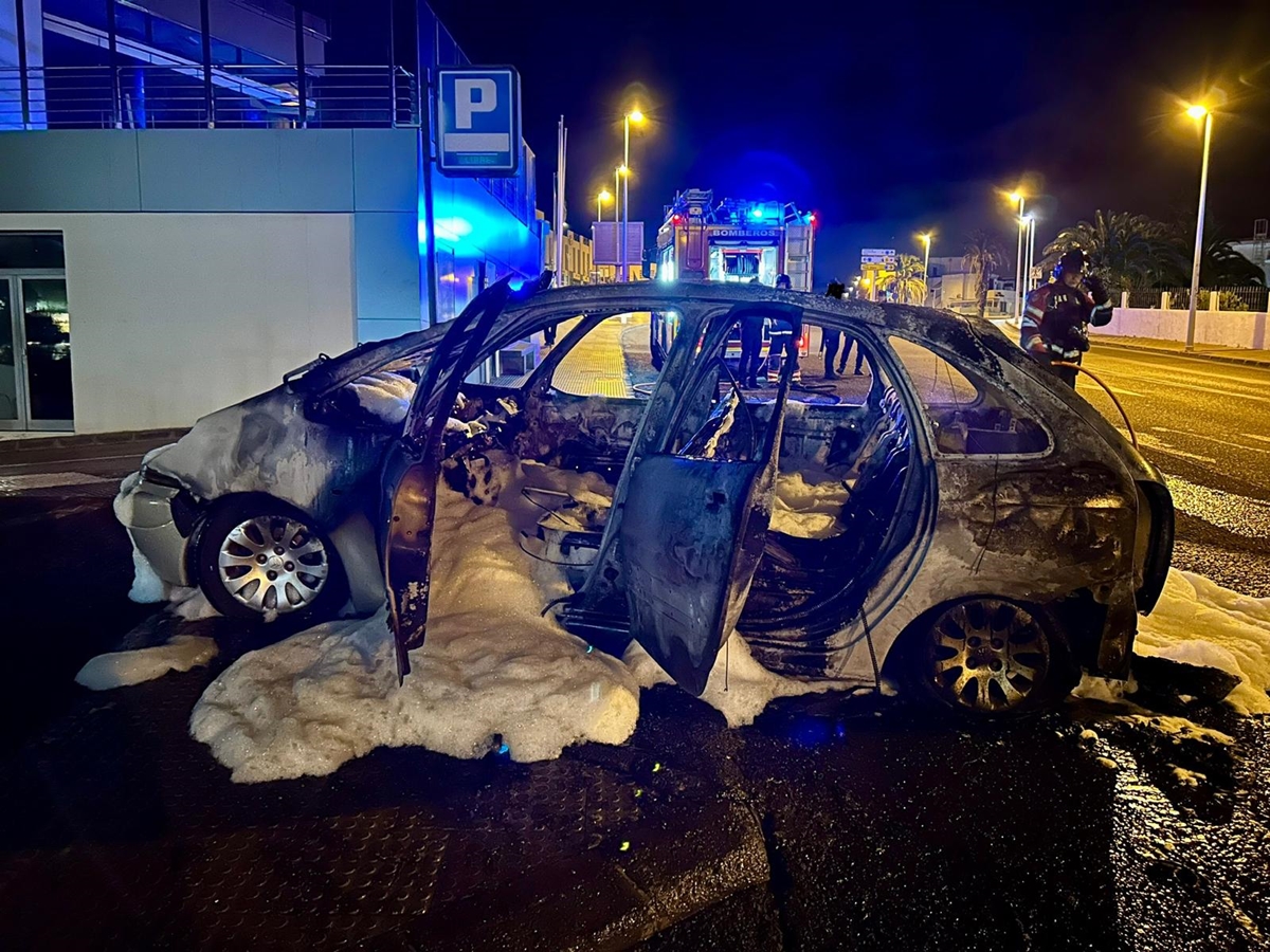 El fuego consumió en su totalidad al vehículo aparcado en la calle Juan Carlos I