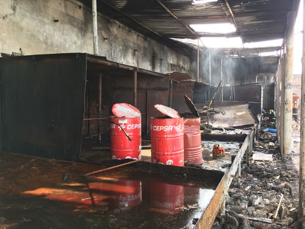 Al parecer han sido unos bidones de aceite que se han prendido fuego al ser cortados con un soplete por los trabajadores de la empresa que pretendía desalojar el local para su reforma. La rápida actuación de los bomberos hizo que no se propagara por la zona. Para la extinción del fuego fueron necesarios más de 6.000 litros de agua.