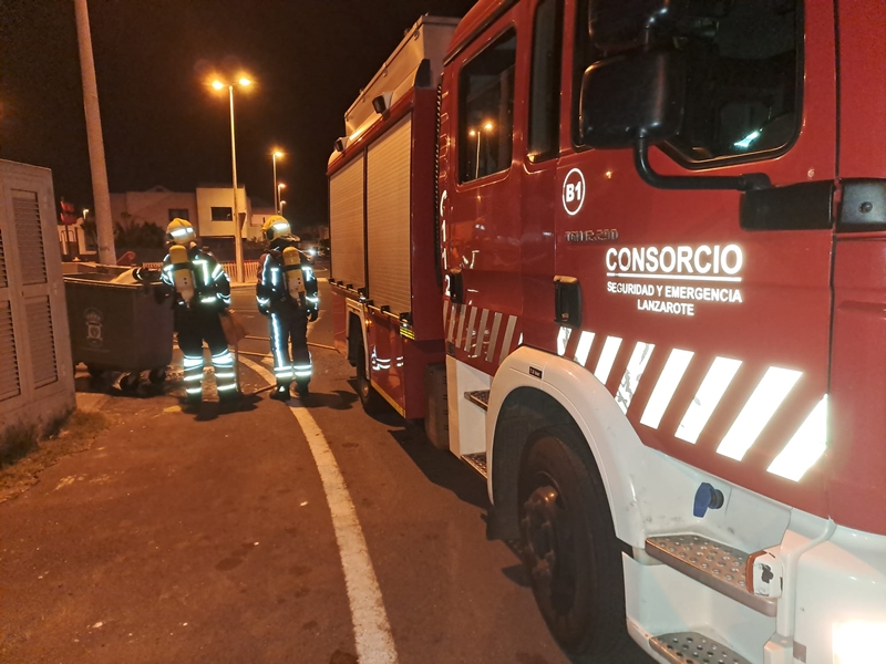 Los bomberos ya habían tenido que realizar otra salida por la noche, en torno a las 21.30 horas, por el aviso de un incendio en un contenedor de basura, en este caso en la calle Los Reyes 121 del municipio de San Bartolomé, y con el peligro de que también había coches aparcados cerca.