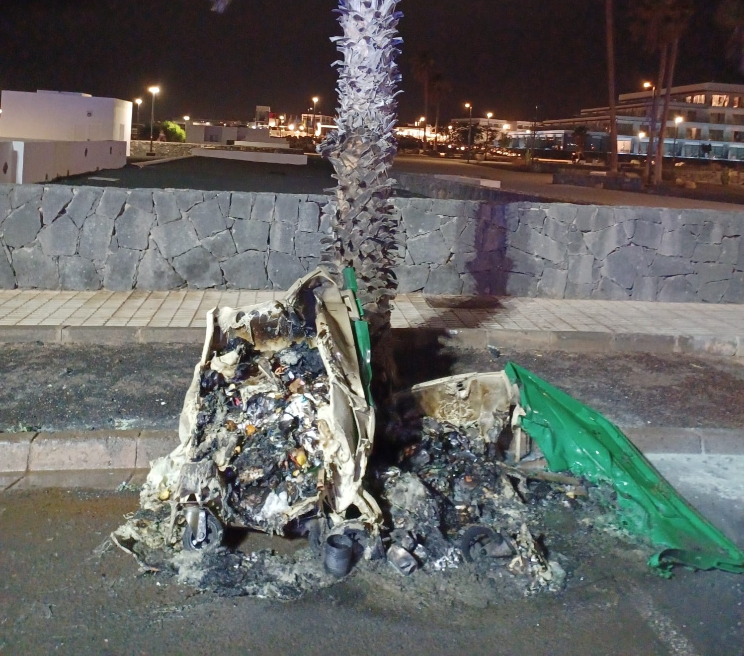 En el lugar, se encontraba ya la Policía Local de Yaiza, que había logrado controlar el incendio con extintores evitando su propagación a otros contenedores y un vehículo cercano.