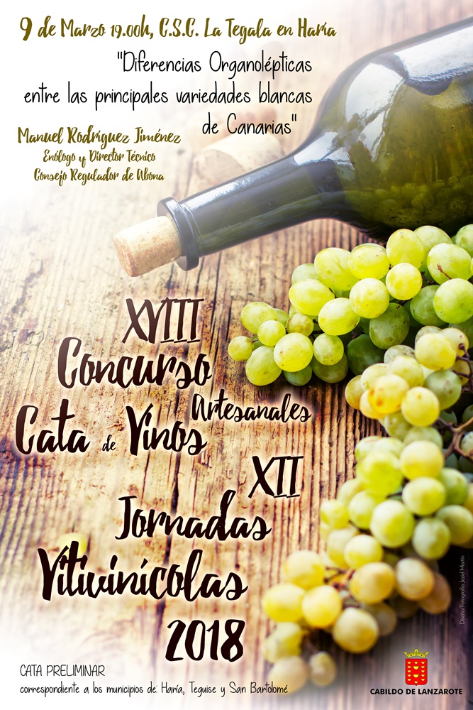 Paralalelamente al desarrollo este viernes de la cata inaugural del 'XVIII Concurso Insular de Cata de Vinos Artesanales' en el Centro Sociocultural La Tegala de Haría, se procederá también a la inauguración de las 'XII Jornadas Vitivinícolas', organizada también por el Cabildo de Lanzarote a través del Área de Agricultura, con la charla 'Diferencias organolépticas entre las principales variedades blancas de Canarias' a cargo del enólogo y director técnico del Consejo Regulador de la Denominación de Origen de Abona, Manuel Rodríguez, que incluirá una cata de vinos representativa de las citadas variedades.