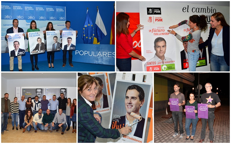 Ciudadanos en Lanzarote ha apostado por Carmen Pellón al Senado por Lanzarote y por María Fernanda Viéitez a la Cámara Baja, mientras que por Podemos es José Ramón Galindo quien se presenta a la Cámara Alta y Gonzalo Busqué quien concurre como número 3 por la provincia de Las Palmas al Congreso. En el caso de IU, que se presenta a las elecciones junto con otras organizaciones bajo el paraguas de Unidad Popular, José Díaz es el candidato lanzaroteño al Senado, mientras Lanzarote no tiene representante en la lista al Congreso, pues el candidato iba a ser el secretario insular de IU en la isla, Sebastián Castilla, pero éste renunció al puesto "por discrepancias" con el proceso de primarias.