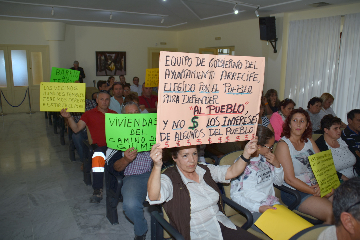 A la sesión plenaria acudió un nutrido grupo de vecinos del barrio de Tenorio, quienes con pancartas y carteles solicitaron que su zona de residencia se incluya de manera definitiva en el planeamiento urbano de la capital, ya que hasta la fecha sigue sin recogerse.