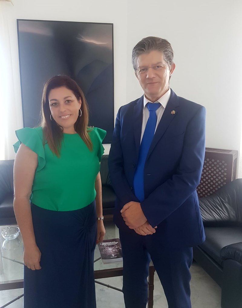 La alcaldesa de la capital, Astrid Pérez, se une a esta efemérides recibiendo al decano del Colegio de Abogados de Lanzarote, Carlos Viña