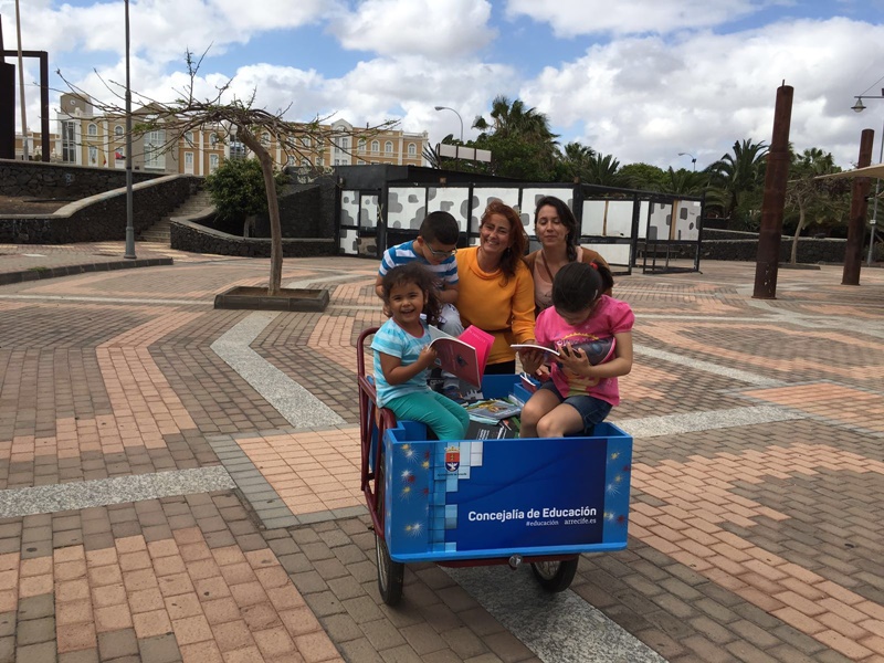 Precisamente, el Área de Educación participa en la citada Feria a través de un “biblio-triciclo” y un “biblio-jolatero”, que cargados de ejemplares literarios recorre estos días las zonas de juegos de los parques de Los Luchadores (Altavista) y del Parque Marítimo El Reducto.