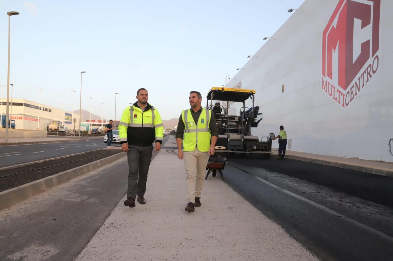 Yonathan de León Machín, y el vicepresidente del Cabildo y consejero de Obras Públicas, Jacobo Medina, han visitado este lunes las obras finales del reasfaltado de este tramo y que permitirá la transformación integral la calle Tenderete, entre el tramo comprendido desde la calle Víctor Hugo y la Avenida de Los Geranios, en el barrio de Argana Alta, en la capital de Lanzarote. El pasado verano se ejecutó el reasfaltado del tramo entre las calles Víctor Hugo e Iguazú.