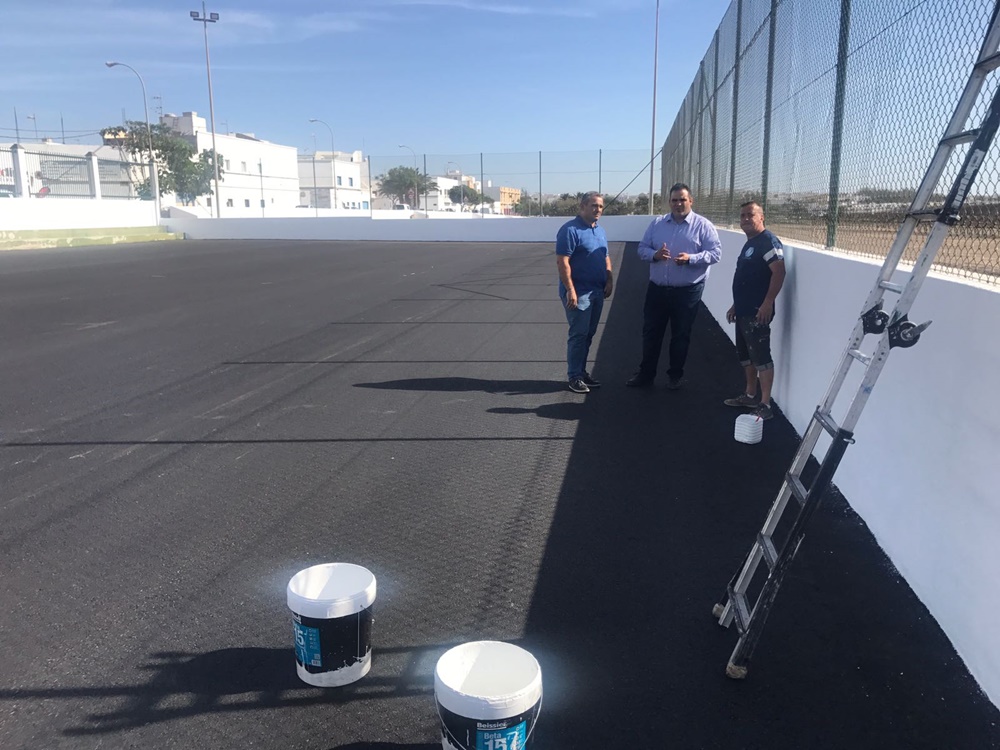 Ambos ediles acudieron esta mañana a supervisar los trabajos que se están ejecutando en dicha zona; una cancha anexa al citado centro sociocultural en la que se están desarrollando trabajos de vallado, iluminación, asfaltado, pintura exterior, pintura y marcado de la cancha, etc, por un importe de 50.000 euros.