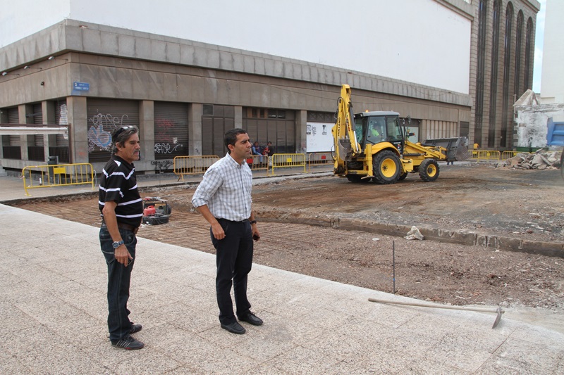 El Ayuntamiento de Arrecife, a través de la concejalía de Vías y Obras, trabaja desde este martes en el acondicionamiento de las inmediaciones del edificio Spínola, en el Charco de San Ginés. La zona de intervención es el solar más próximo a los cines Atlántida y la calle que conecta el paseo con la Calle Real.