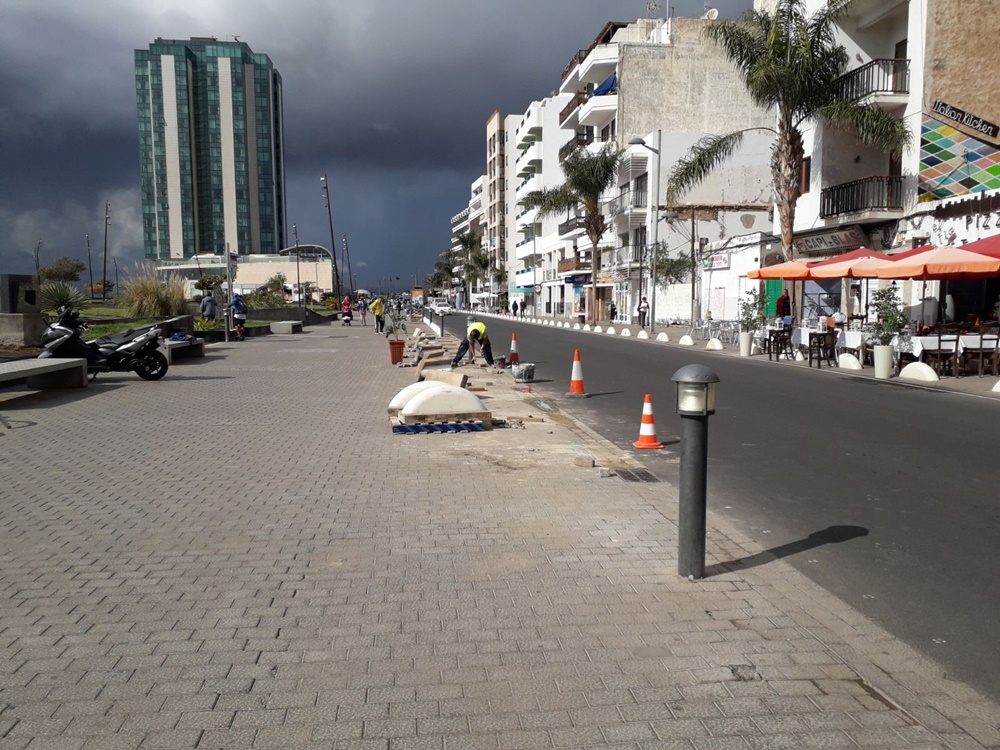 El Ayuntamiento de Arrecife ha comenzado a retirar los bolardos de la avenida, al menos en principio los de la zona del Parque Islas Canarias, donde se va a celebrar este año por primera vez el Carnaval de Día junto con la Feria de la Tapa.