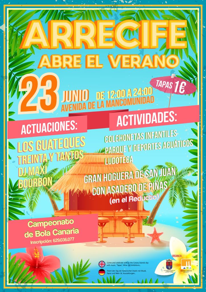Habrá fiesta del verano en Arrecife. El 23 de junio, víspera de San Juan miles de arrecifeños podrán disfrutar de un día casi completo de actos festivos, actuaciones musicales y una gran hoguera en la playa de El Reducto. El Ayuntamiento de Arrecife finalmente ha logrado resolver los problemas burocráticos y administrativos que pusieron en peligro esta fiesta veraniega.