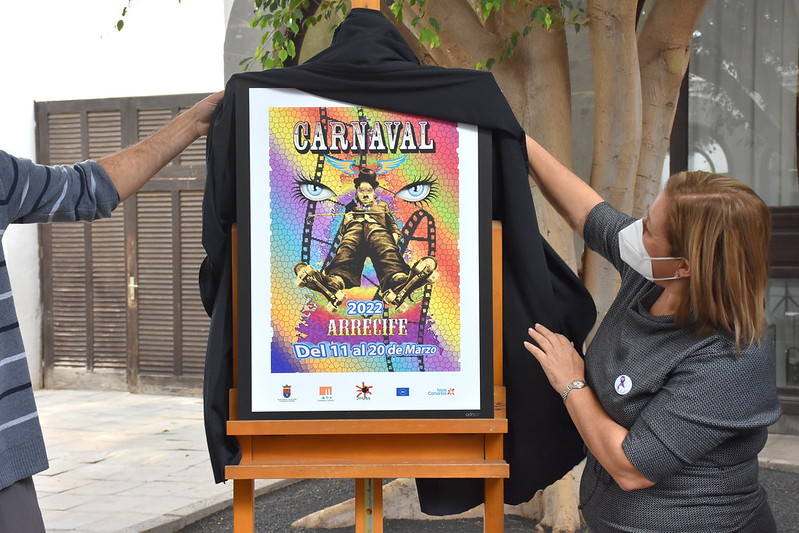 Por su parte, Alexánder Pérez, autor del Cartel del Carnaval de Arrecife 2022, señalaba que “como el carnaval este año va sobre el cine, usé la figura de Charlie Chaplín para realzar el concepto de la alegría que transmite el carnaval, no sólo los de la isla, sino la fiesta en sí”.