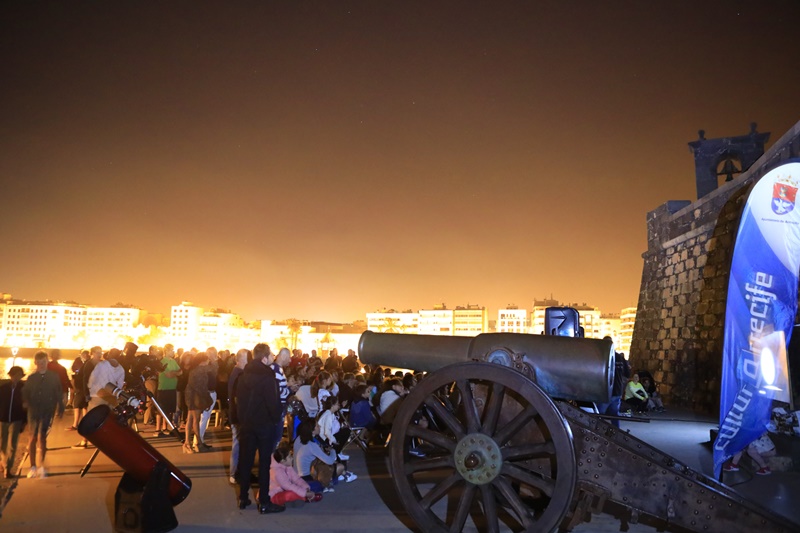 La observación nocturna celebrada este sábado en la Explanada del Castillo de San Gabriel para disfrutar de "Las Perseidas", conocidas como las Lágrimas de San Lorenzo, atrajo a más de 500 personas, que no quisieron perderse la mayor lluvia de estrellas del verano.
