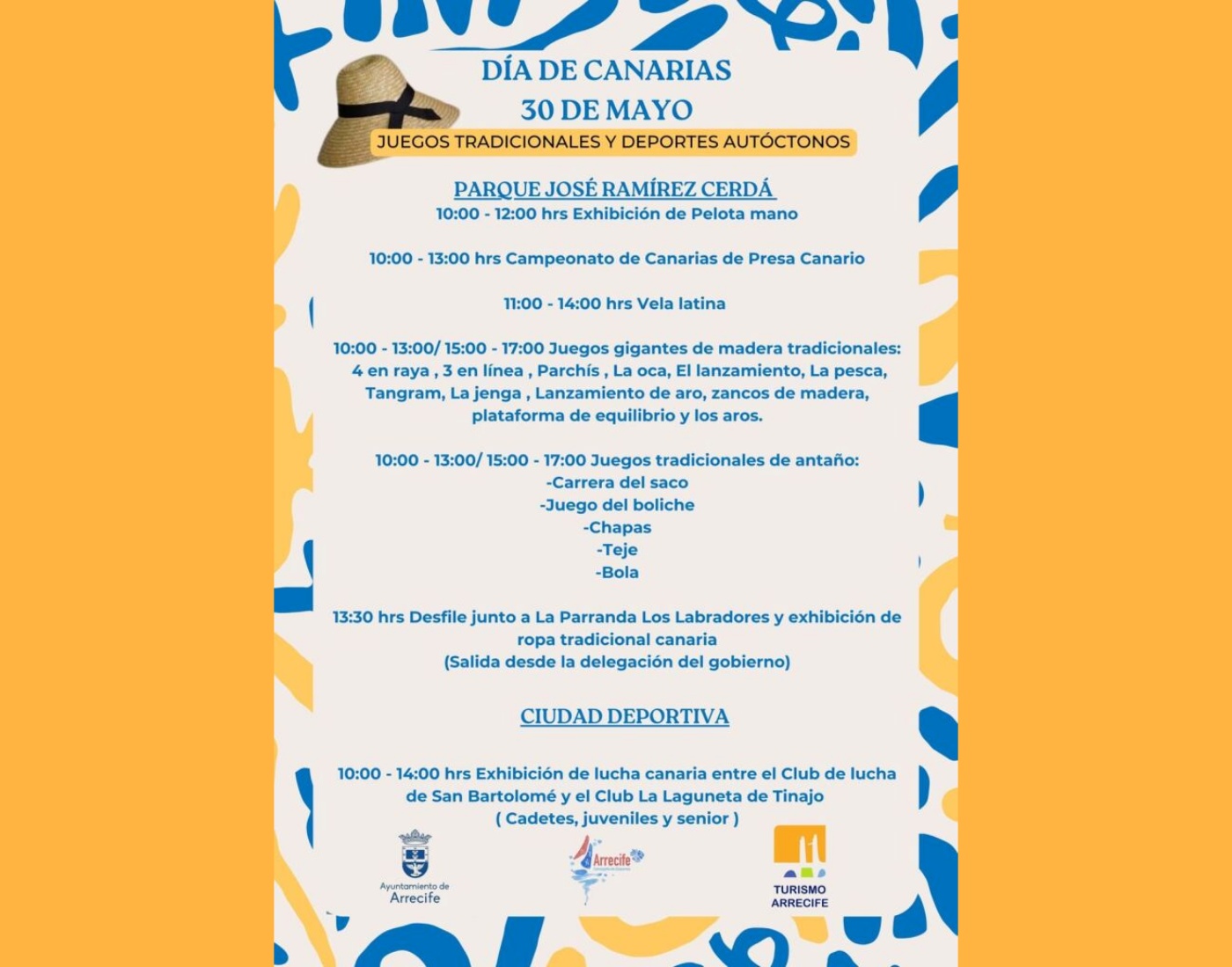 El Ayuntamiento de Arrecife, y su alcalde Yonathan de León, invita a toda la ciudadanía a participar en este día de celebración de nuestra identidad, nuestras raíces y nuestro patrimonio, disfrutando de una jornada repleta de actividades pensadas para todas las edades, para toda la familia.