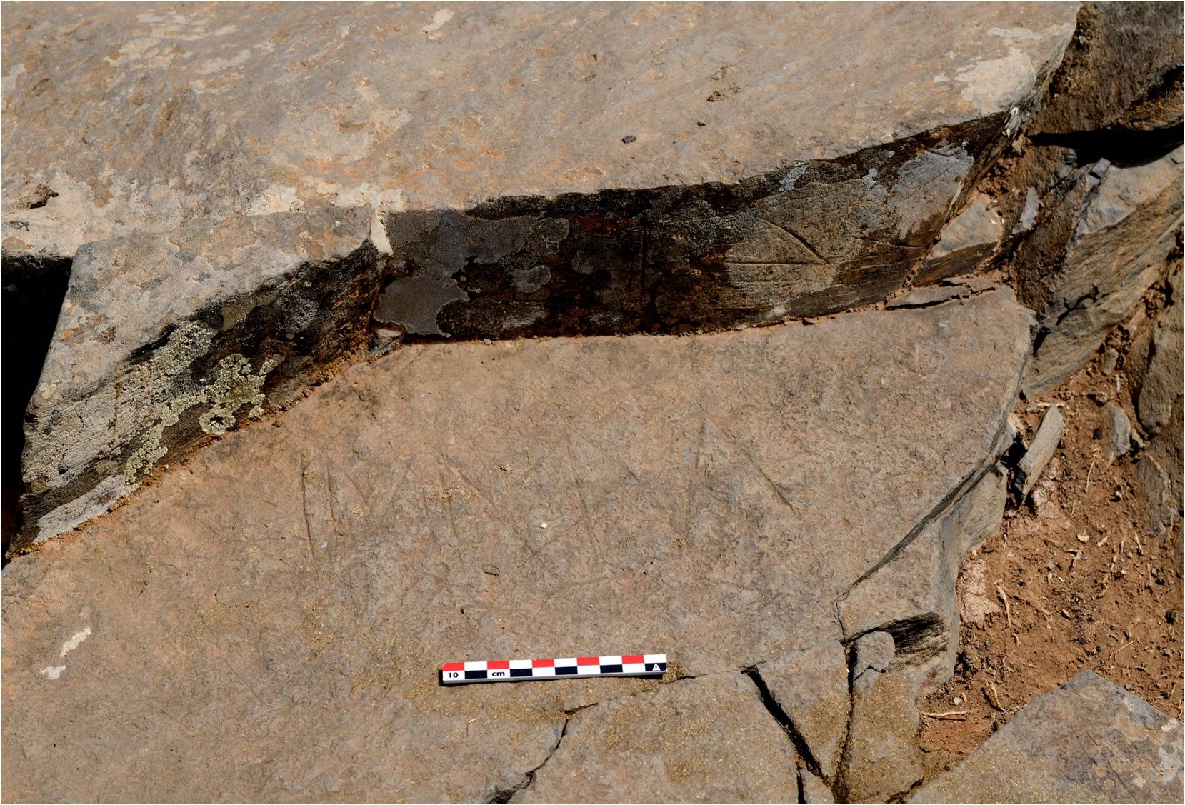 En el mismo yacimiento, no en sus proximidades o entorno, sino en el mismo lugar, se encuentra un ganado de cabras estabulado que utiliza las piedras grabadas, muchas de ellas escritas, para descansar, comer, defecar y vivir.