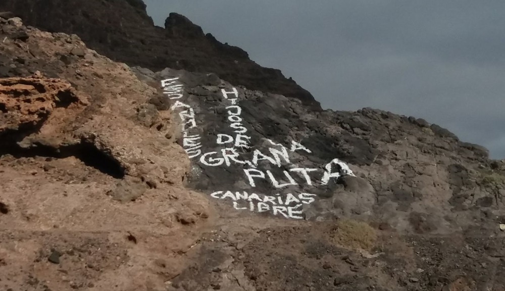 Las pintadas se han hecho en un suelo afectado por un expediente de declaración de bien de interés cultural dada su riqueza paleontológica donde con tinta blanca rotularon: “los españoles son hijos de la gran puta. Canarias Libre”. Para la asociación denunciante, los autores "no manifiestan el más mínimo respeto hacia nuestro patrimonio, dejando entrever, entre otras cosas, el desconocimiento que tienen sobre el mismo y la escasa o nula valoración que hacen de nuestra identidad".