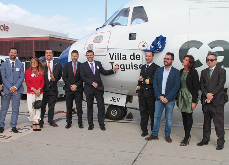 El bautizo del primer ATR 72 con el nombre de "Villa de Teguise" simboliza el homenaje que Canaryfly ha rendido a Teguise con motivo de su 600 aniversario. El alcalde de Teguise, Oswaldo Betancort, fue el encargado de descubrir oficialmente el nombre del avión, acompañado del director general de Canaryfly, Régulo Andrade.