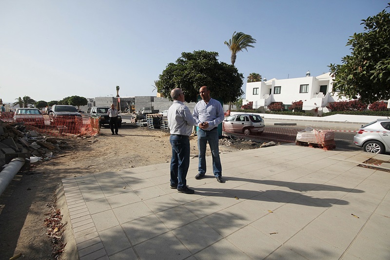 El Ayuntamiento de Tías afirma que durante estos días continúan “a buen ritmo” las obras de mejora que, con una inversión próxima al millón de euros, se están efectuando en la calle Reina Sofía de Puerto del Carmen, una de las principales puertas de entrada a esta localidad turística, donde se ubica el colegio público Concepción Rodríguez Artiles.