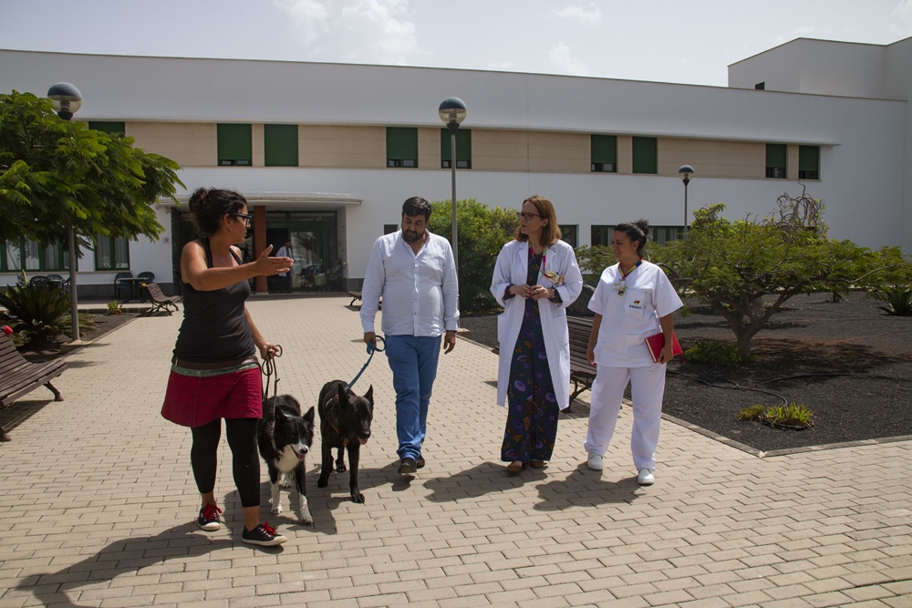 El concejal fue recibido por la directora, Elisabeth Artiles Medina y equipo de trabajo del Centro, que se mostraron encantados con la idea y abiertos a la experiencia. En este centro residen mayores del municipio esperando, según palabras de David Rocío, poder hacerlo extensivo a otras residencias de la isla. Visitaron las instalaciones acompañados por dos perros que han sido previamente adiestrados por Ana María Suárez, que lleva a cabo el proyecto de Obediencia Urbana en el municipio en colaboración con el albergue municipal.