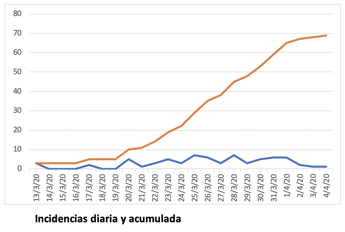 Por otra parte, el número de altas se mantiene en 4 y el de fallecidos en 3.