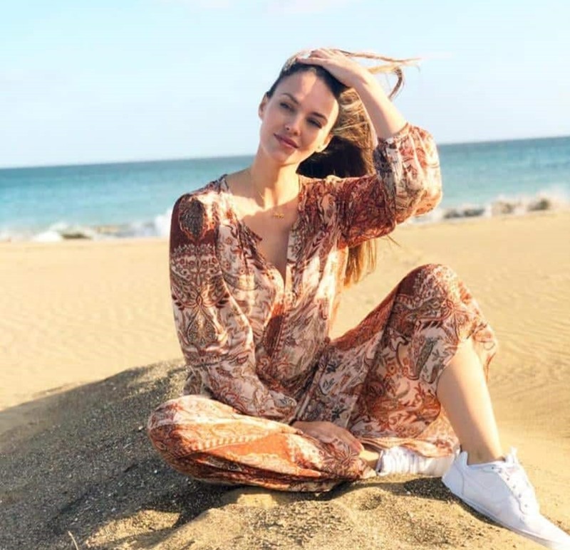 La modelo lanzaroteña, Helen Lindes, luce embarazo en una playa de Lanzarote en pleno diciembre presumiendo del buen tiempo canario