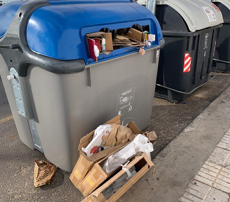 Contenedores desbordados desde hace varios días frente al conocido edificio El Reducto muestran una imagen lamentable en plenas fiestas navideñas, en una zona por la que pasean centenares de ciudadanos y turistas.