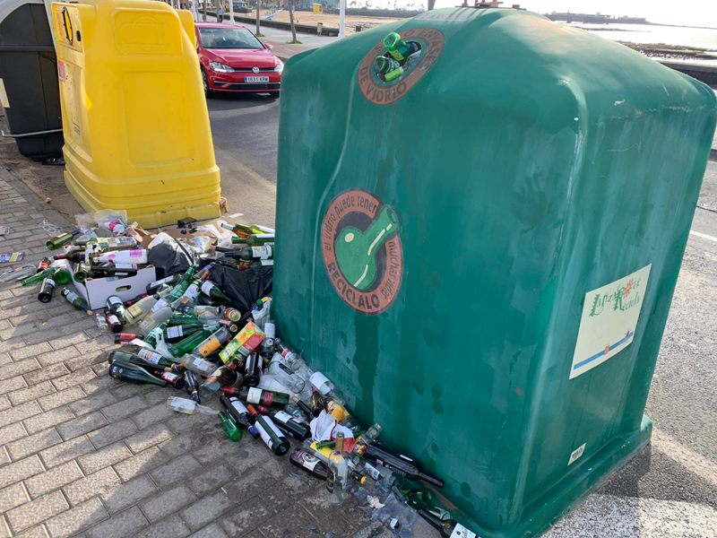Los contenedores, desbordados desde hace varios días, muestran una imagen lamentable de una zona muy transitada de Arrecife