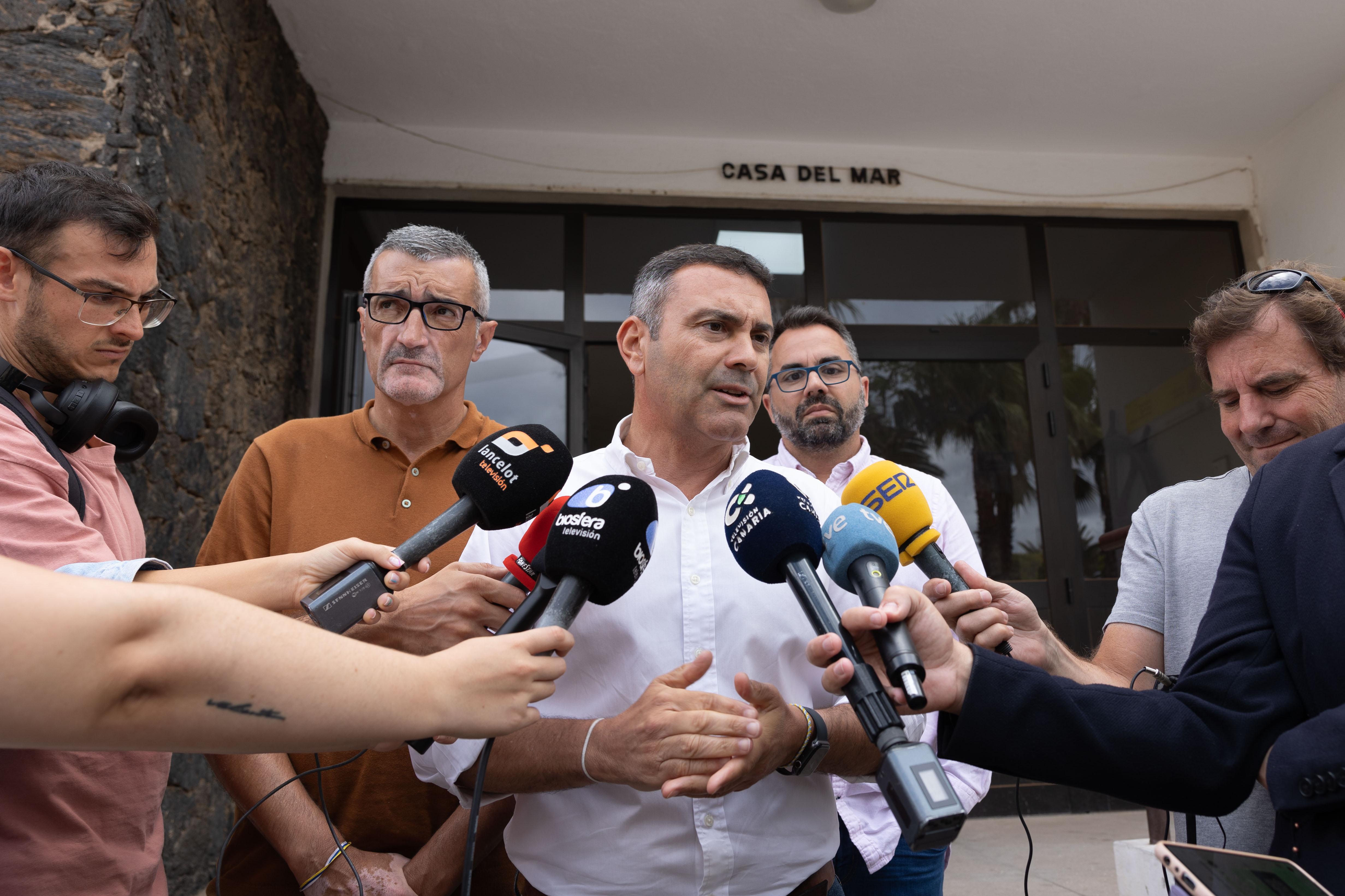 El presidente del Cabildo de Lanzarote, Oswaldo Betancort, ha comparecido este lunes con carácter urgente ante los medios para alzar la voz ante un nuevo repunte de migración irregular en la isla que, tan solo este fin de semana, ha recibido a casi 600 personas, 40 de ellas menores de edad, la cuales han sido trasladadas a la Casa del Mar de Arrecife.