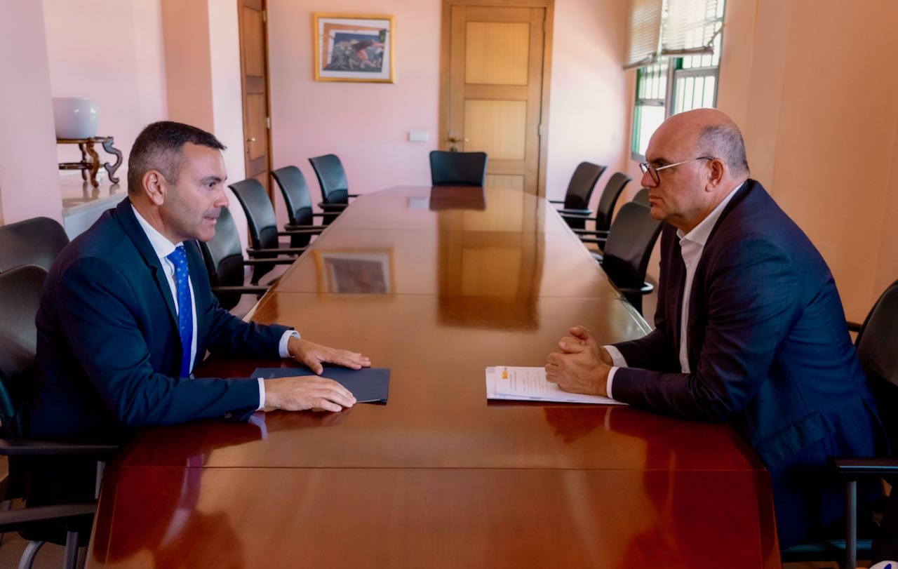 El presidente del Cabildo de Lanzarote, Oswaldo Betancort, y el delegado del Gobierno en Canarias, Anselmo Pestana, se reunieron este jueves para abordar asuntos que son competencia de España, tales como la necesidad de reforzar los efectivos de las Fuerzas y Cuerpos de Seguridad del Estado dependientes del Gobierno español, así como la situación de los menores migrantes en la isla o la atención ciudadana en las oficinas insulares del Instituto Nacional de la Seguridad Social (INSS), Tráfico y Extranjería.
