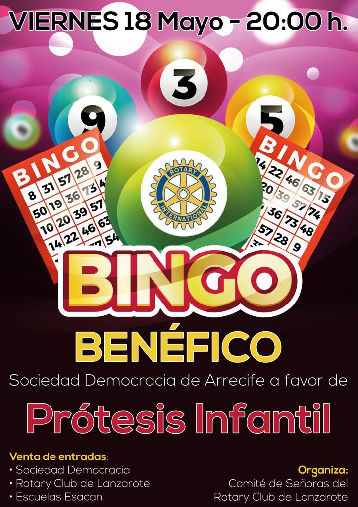 Rotary Club Lanzarote organiza un bingo solidario en favor de una niña de la isla que necesita una prótesis en el fémur. La cita será mañana viernes 18 de mayo a las 20.00 horas en la Sociedad Democracia de Arrecife.