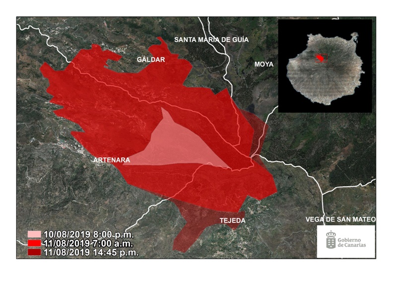 El incendio forestal que afecta a los municipios de Artenara, Tejeda y Gáldar, en Gran Canaria, está contenido dentro del perímetro de 23 kilómetros y no ha progresado por lo que la superficie afectada por el fuego continúa sobre las 1.000 hectáreas aproximadamente, según ha informado el presidente del Gobierno de Canarias Ángel Víctor Torres.
