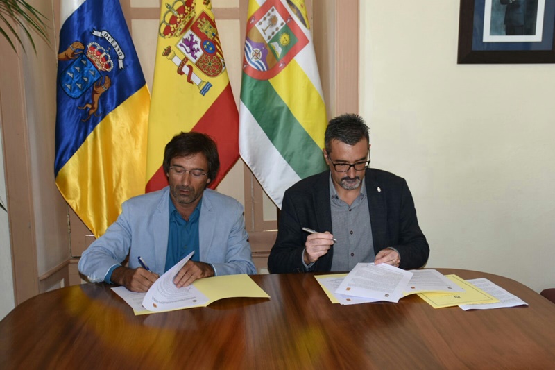 El salón de Plenos del ayuntamiento norteño fue el lugar escogido para la rúbrica de un acuerdo que, amparado por los juristas y equipos jurídicos de los Centros, del Ayuntamiento de Haría y del Cabildo de Lanzarote, y con informes favorables de los departamentos de Secretaría e Intervención de las dos administraciones, "no merma las propiedades y derechos del Cabildo ni del ayuntamiento de Haría, y regula y da seguridad jurídica a la relación entre estas dos instituciones después de 50 años".