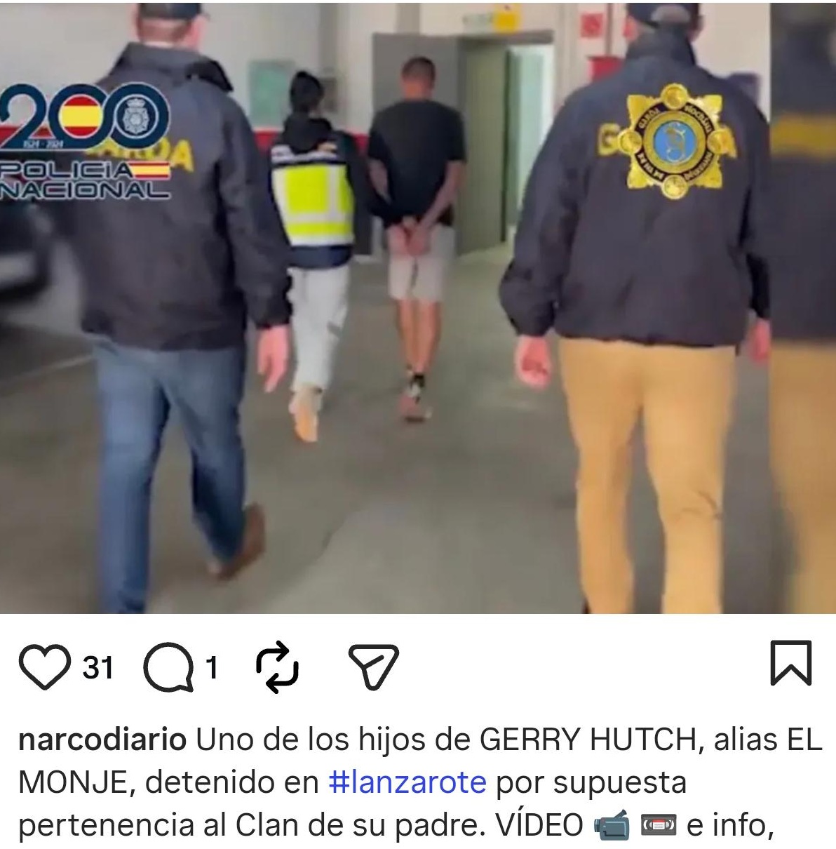 La Policía Nacional ha asestado un nuevo golpe a la organización criminal irlandesa conocida como los “Hutch” con la detención en Tías de uno de sus principales dirigentes. Según varias informaciones se trata del hijo de "El Monje" que en agosto de 2021 ya fue detenido, también en Lanzarote, situándose como el cabecilla de esta banda criminal.
