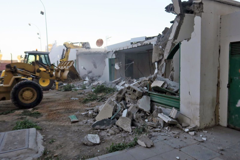 El Ayuntamiento de Arrecife, a través de la Concejalía de Vías y Obras, inició este martes por la mañana el derribo del antiguo club de petanca, debido al mal estado en el que se encontraba la infraestructura".