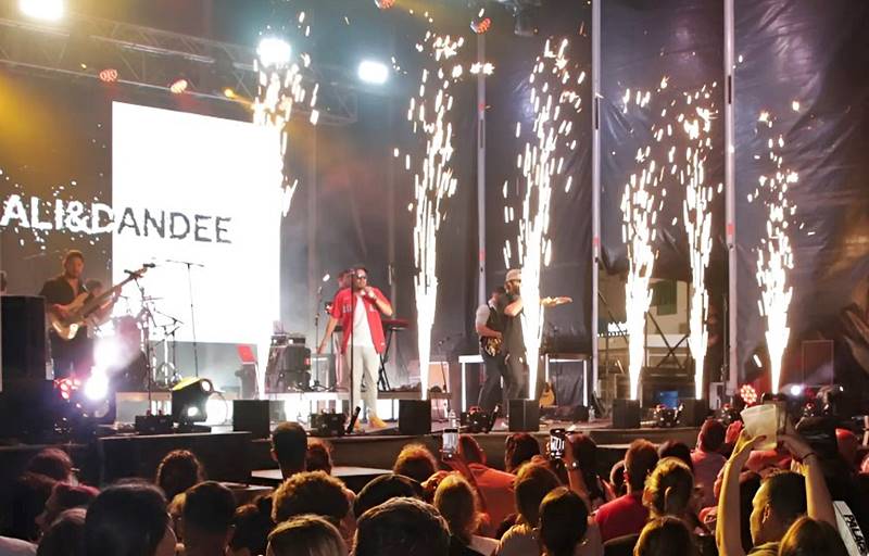 La localidad turística de Playa Blanca vivió este sábado una noche de música espectacular con el directo de Cali y El Dandee, que desembarcaron en las festividades del Carmen para ofrecer pop latino y urbano, aunque la pareja de hermanos cantantes también ofreció pinceladas de reguetón y balada melódica, pero en cualquier caso, sea cual fuera el género, el público siguió las letras de su repertorio lleno de éxitos y disfrutó del concierto del dúo colombiano en una plaza repleta de fans.