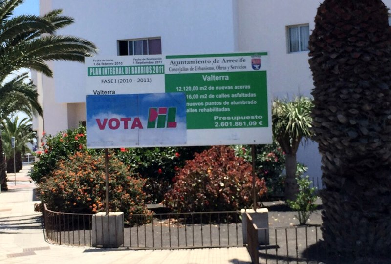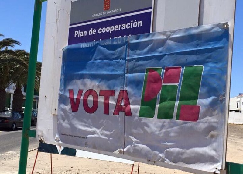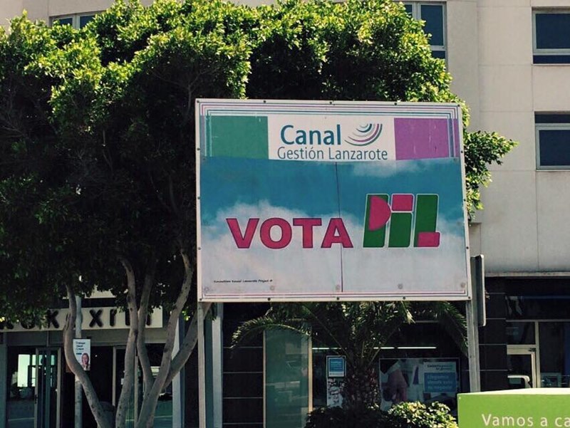 Campaña provocadora la que ha llevado a cabo el PIL al colocar su publicidad electoral sobre carteles de Canal Gestión e instituciones como el Cabildo y el Ayuntamiento de Arrecif, tal y como se puede apreciar en las imágenes.