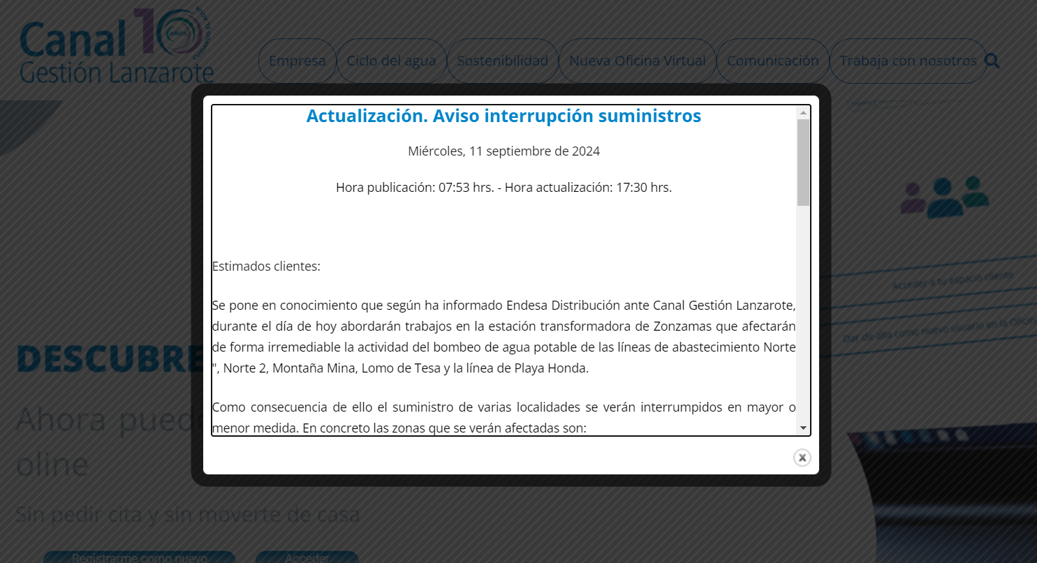 Este miércoles, 11 de septiembre, Lanzarote vive uno de los mayores cortes en el suministro de agua de los últimos años