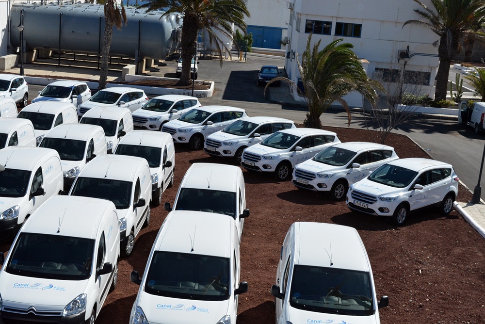 Actualmente la flota móvil de Canal Gestión Lanzarote está compuesta por 100 vehículos, cuyo consumo de gasóleo y gasolina produce una huella de carbono de 665 tn CO2 eq al año. Ahora, y por primera vez, 34 de estos coches son eléctricos lo que permitirá situar la huella de carbono por consumo de combustible en una media de 425 tn CO2 eq anuales frente a las 665 tn.