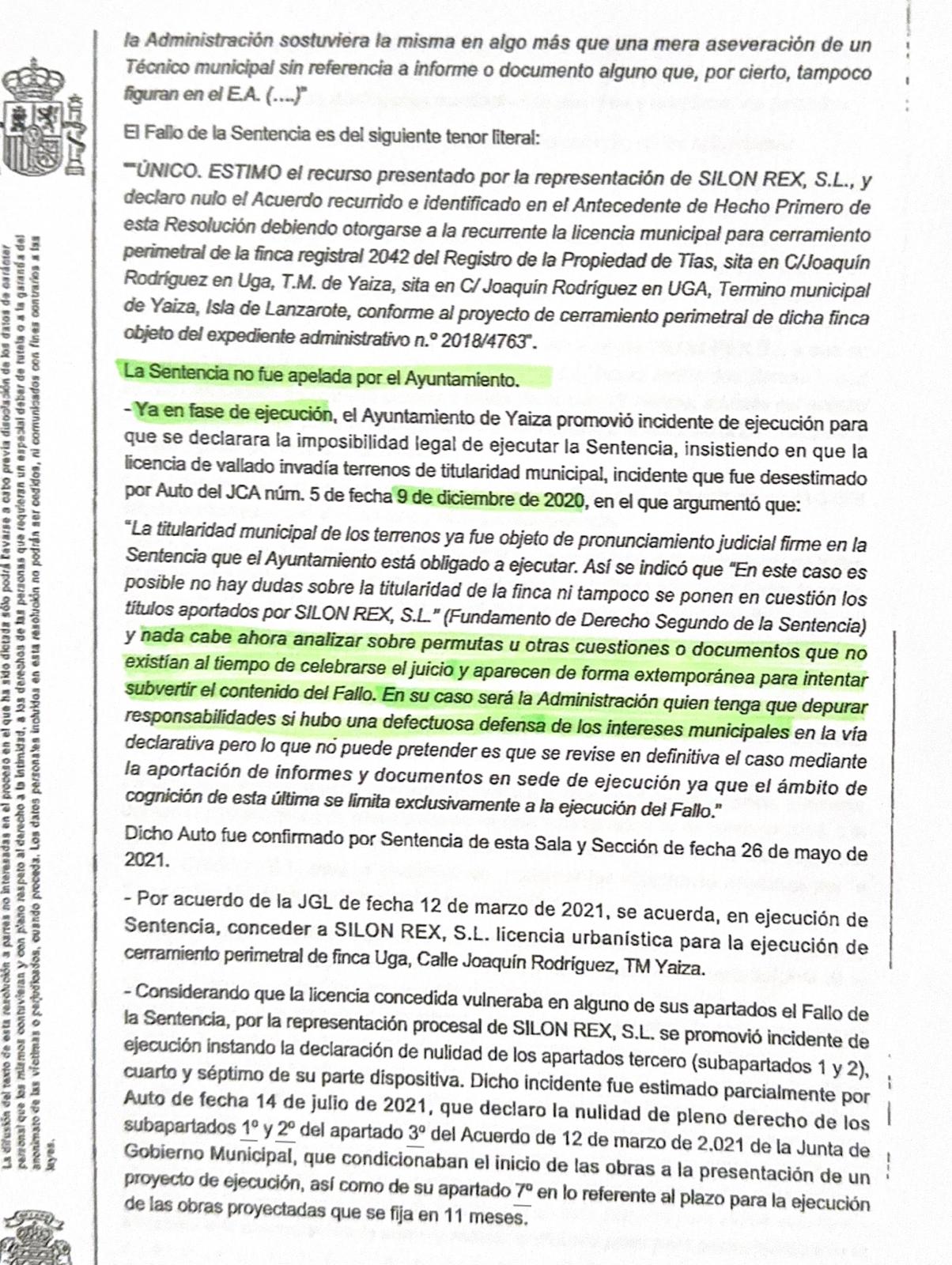 "Óscar Noda ocultó en dicho encuentro que el propio Tribunal Superior de Justicia de Canarias (TSJC) ha reflejado su dejadez en la defensa de los intereses de Yaiza en la sentencia que emitió obligando al Ayuntamiento a derribar el muro que impedía el acceso a la parcela en litigio", denuncia Machín.