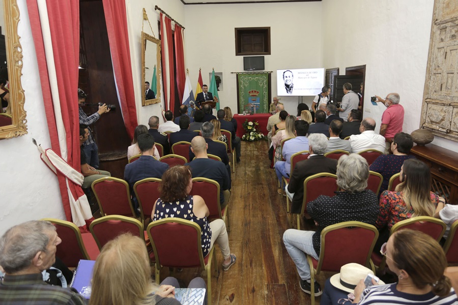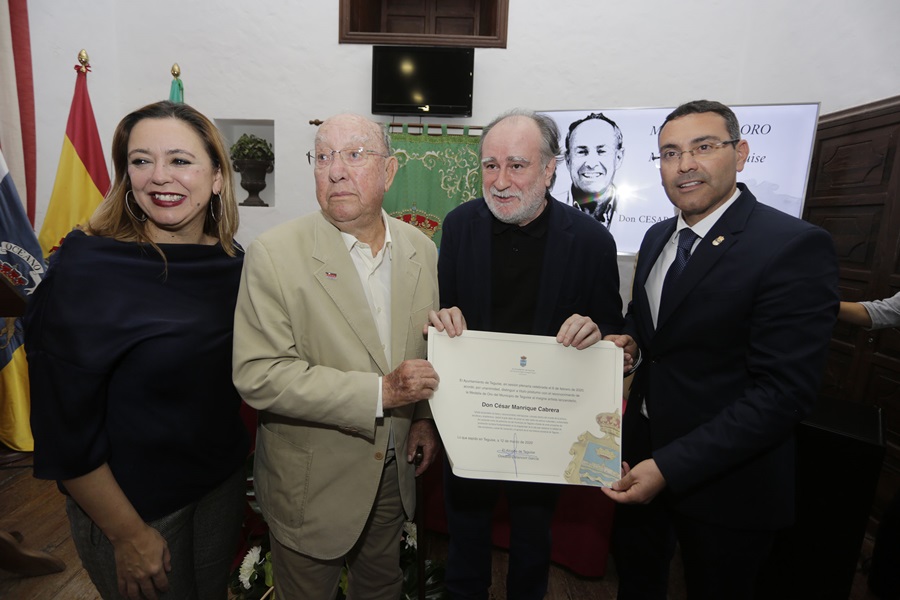 El alcalde de Teguise, Oswaldo Betancort, abrió el acto institucional de entrega de la Medalla de Oro a título póstumo a César Manrique dando la bienvenida a los familiares del artista, a los representantes de la Fundación César Manrique y a las autoridades asistentes, así como a los medios de comunicación y vecinos que presenciaron el reconocimiento que la Corporación de Teguise ha otorgado al artista lanzaroteño por su obra universal, "y especialmente, por el cariño y el aprecio hacia nuestro municipio de Teguise".