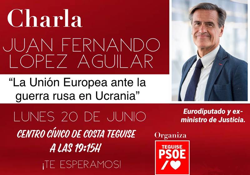 l PSOE inicia su ciclo de conferencias “Nos interesa” con el ex-ministro y eurodiputado Juan Fernando López Aguilar. ‘’La Unión Europea ante la guerra rusa en Ucrania”. Es el título de la conferencia que el PSOE de Teguise ofrecerá este lunes, 20 de junio, para analizar un conflicto que afecta a todo el continente.