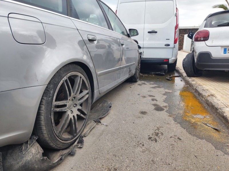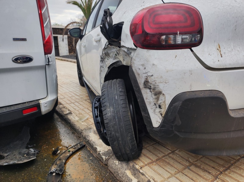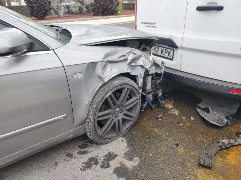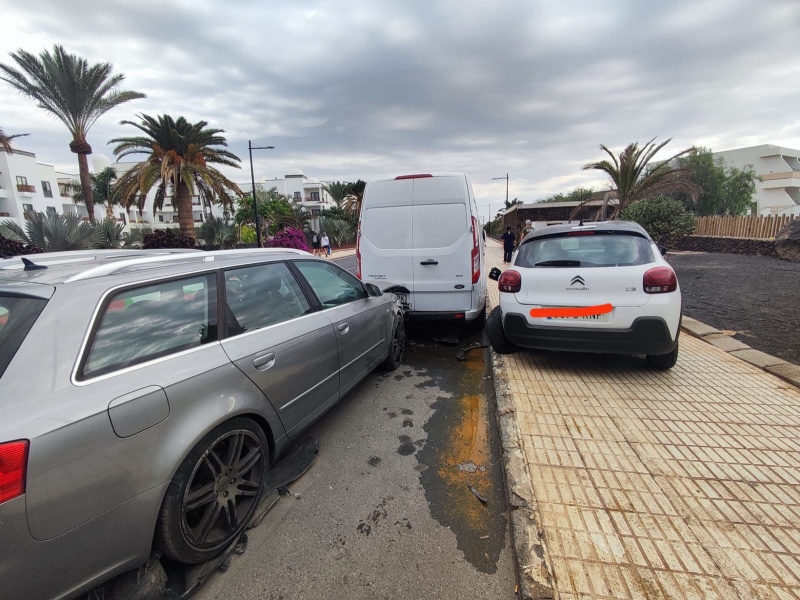 El incidente se ha producido concretamente en la Avenida de Papagayo, a la altura del nuevo Hotel Barceló. Un coche impactó contra el que iba delante, con tanta fuerza que lo subió a la acera del golpe.