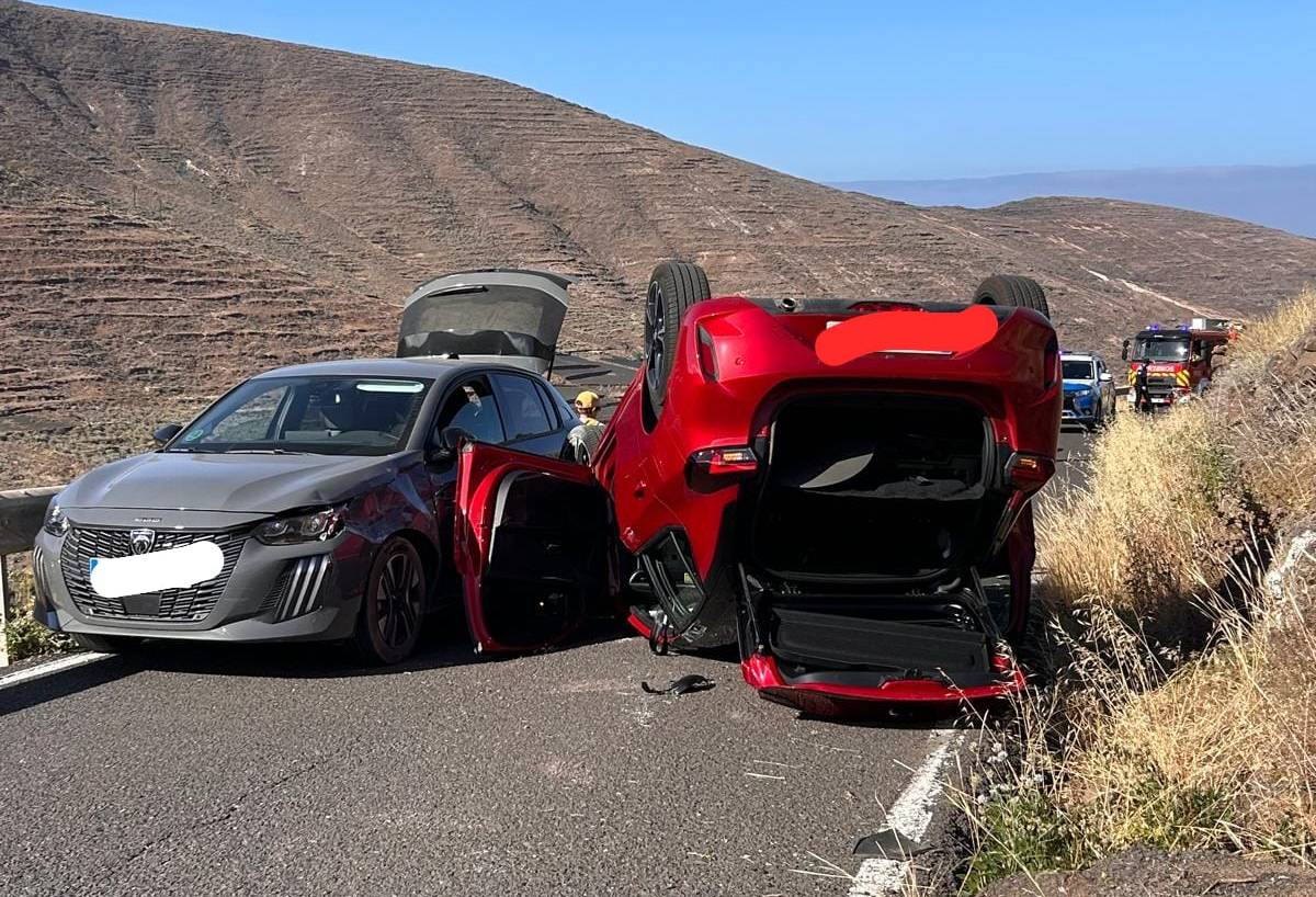 Un vehículo volcó este jueves en la carretera de Tabayesco, a la altura del kilómetro 3 de la LZ-207, en el municipio de Haría. El accidente, registrado en torno a las 17:30 horas, no dejó heridos de gravedad, ya que los dos ocupantes del coche se encontraban fuera del mismo a la llegada de los servicios de emergencia y fueron atendidos por los sanitarios en aparente buen estado de salud.