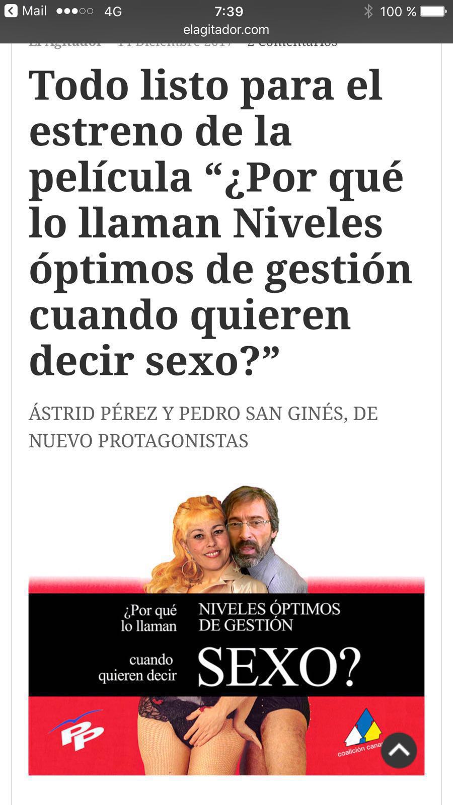 En la imagen, que titula como "Por qué lo llaman niveles óptimos de gestión cuando quieren decir sexo? Meca hace una escenificación de un posible cierre del pacto entre PP y CC con tintes sexuales, completamente falsos.