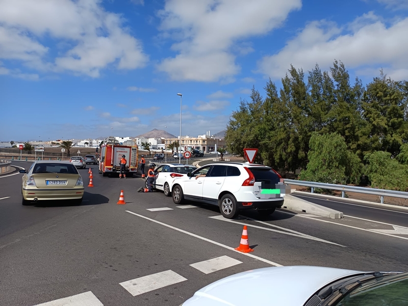 La colisión tuvo lugar en la mañana de este viernes en la rotonda de los Cuarteles de Arrecife, una infraestructura viaria que diariamente soporta un volumen intenso de tráfico.