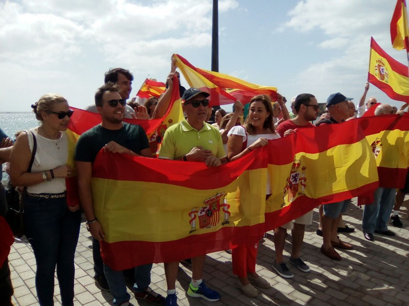 Medio centenar de personas se ha manifestado este sábado en Arrecife reclamando mantener la "unidad de España" y en contra del referéndum catalán. Entre los presentes destacó la presencia de la presidenta del PP de Lanzarote, Astrid Pérez, y otros cargos de su partido. La movilización realizada en la isla se suma a las convocadas en el resto del país por la Fundación Denaes, "fundación para la defensa de la nación española".