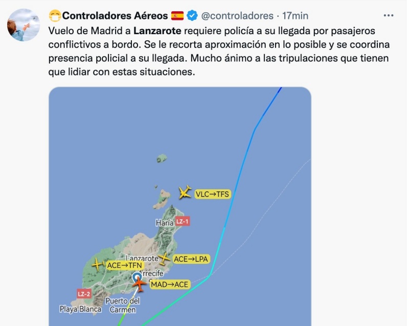 Los controladores aéreos afirman que se le recorta aproximación en lo posible y se coordina presencia policial a su llegada. “Mucho ánimo a las tripulaciones que tienen que lidiar con estas situaciones”, sentencian desde el perfil de Twitter de controladores aéreos.
