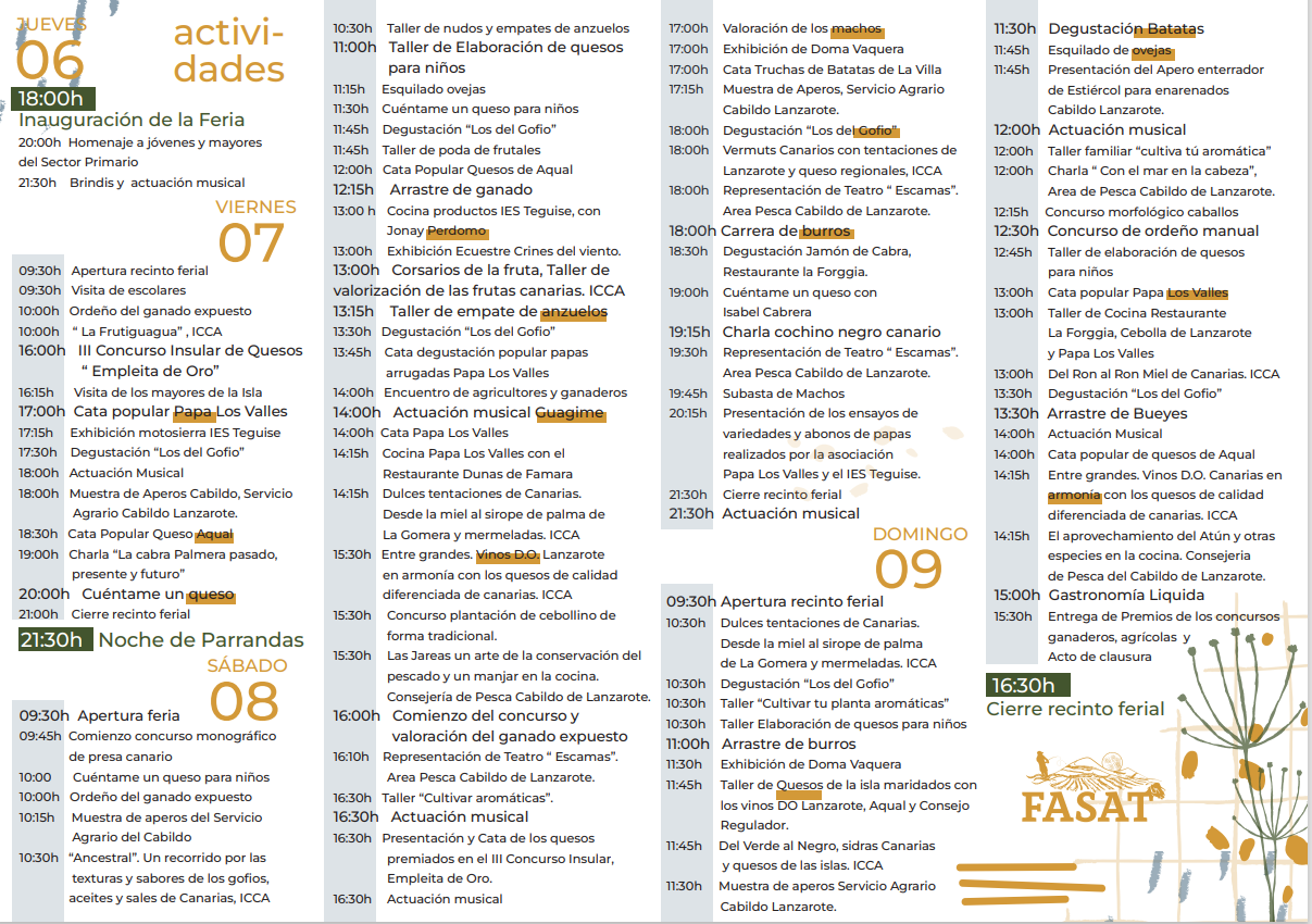 En ella se pondrá en valor tanto los productos de kilómetro cero así como el trabajo de los diferentes profesionales del sector primario que, con su esfuerzo, mantienen viva la tradición ofreciendo productos de calidad, con el sello de identidad de Lanzarote. Durante varias jornadas, como podrán comprobar en el programa que les facilitamos, se realizarán diferentes actividades para todos los públicos.
