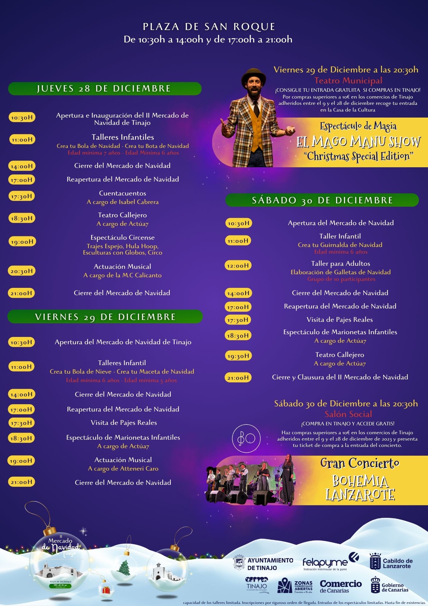El Ayuntamiento de Tinajo y FELAPYME presentan una amplia programación para toda la familia del 28 al 30 de diciembre